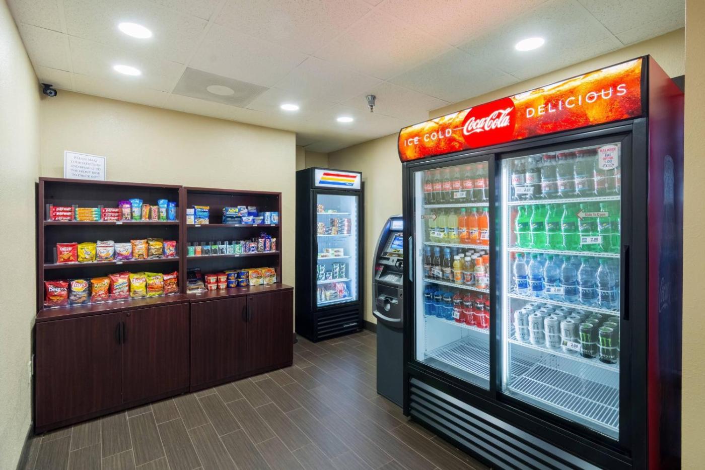 Rooms no longer have carpet they arelinoleum now and the business center is also no longer available as far as snacks and drinks we do not have a vending machine but we do have a small marketplace in the lobby